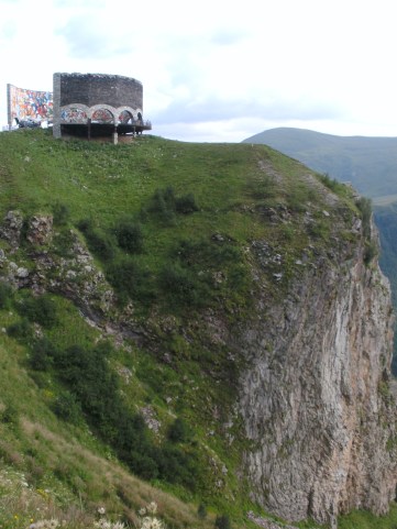 Ik zit op een terrasje in het noorden van Georgië met uitzicht op machtige bergen en een fascinerend Sovjetmonument. Vandaag wil ik tot in Kazbegi raken om daar enkele dagen te blijven en de gelijknamige berg te bewandelen. Maar de fut om snel verder te liften, ontbreekt mij voorlopig. Ik bestel dan maar sjasliek, een soort barbecuevlees.