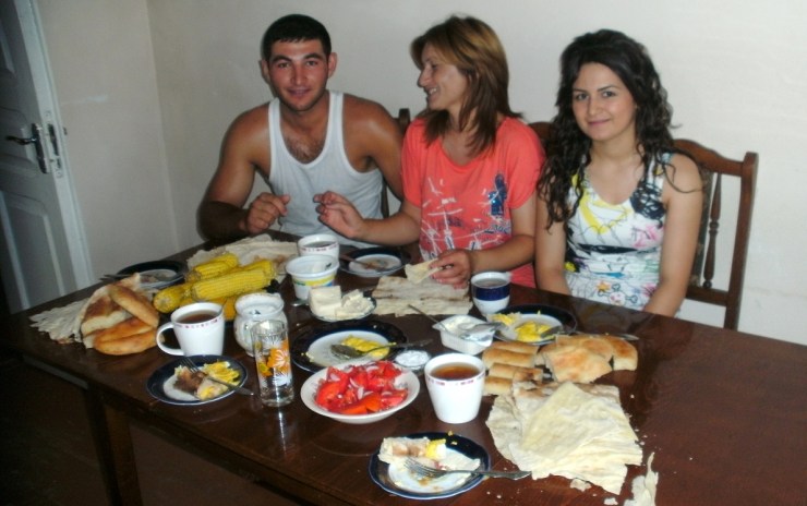 Ararats vrouw Sveta en zijn twee lieftallige dochters Maedi en Ani zijn zeer aardig. Ik slaap zacht in een doorhangend bed.