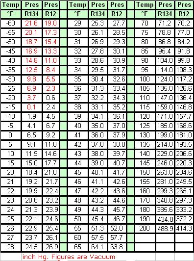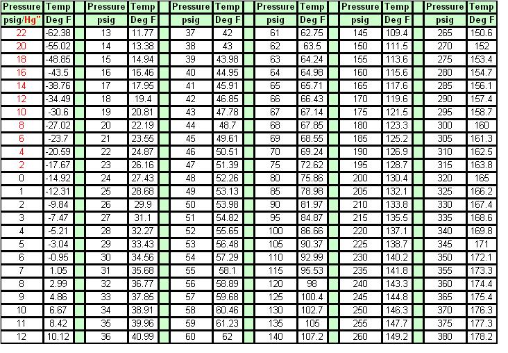 Temp vs Pressure Chart