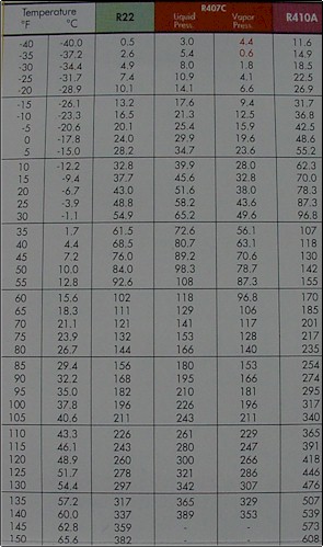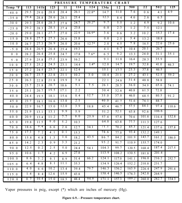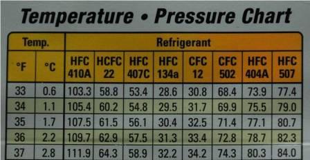 pressure/temperature chart