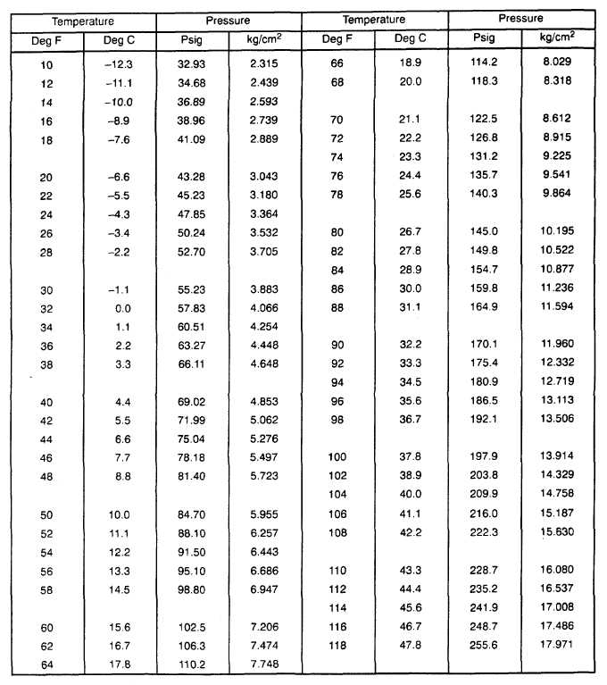 pressure temperature chart
